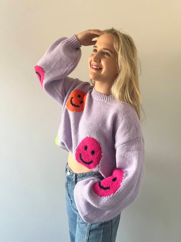 Smiley knit sweater Purple